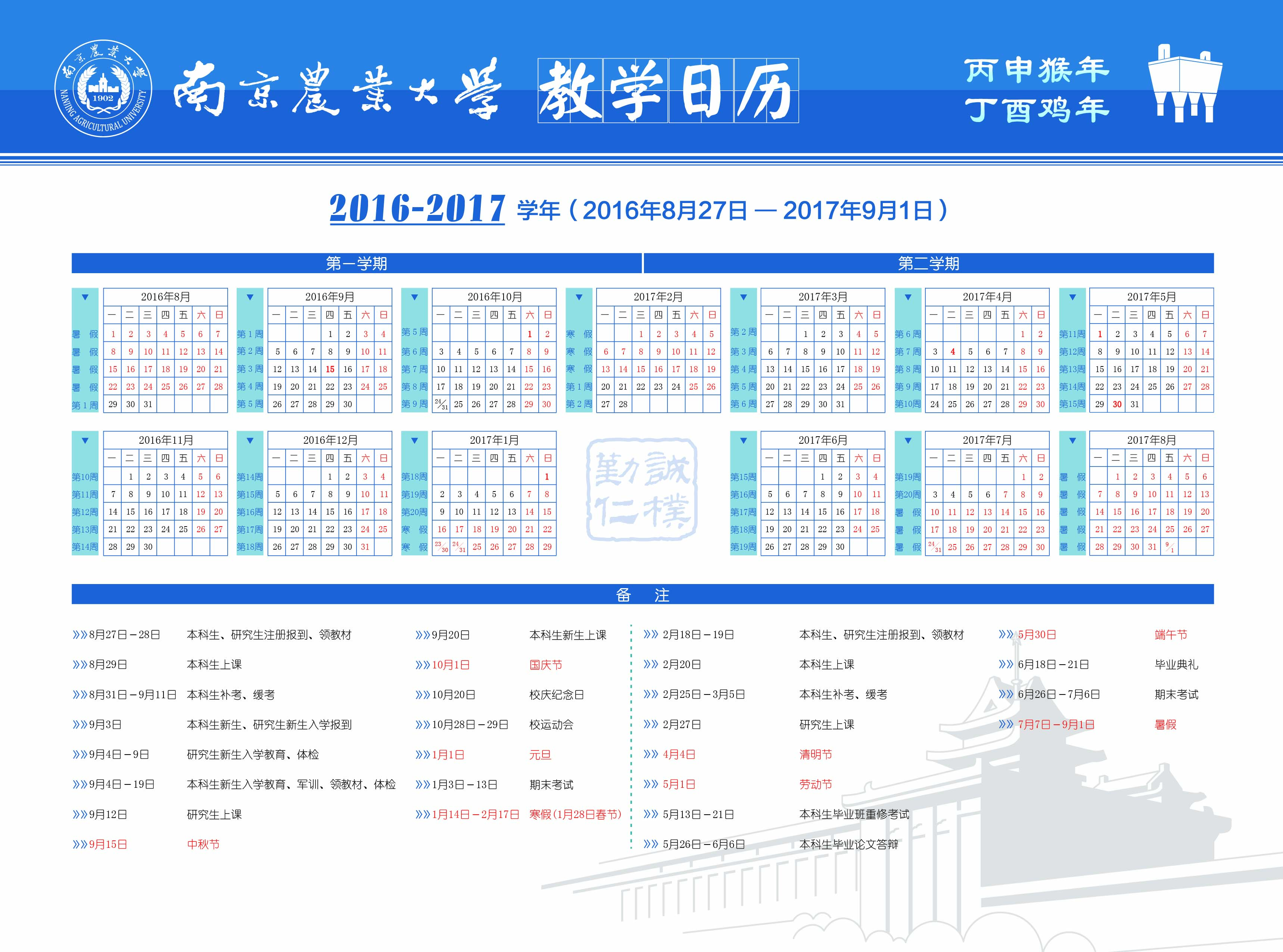 2016-2017学年教学日历