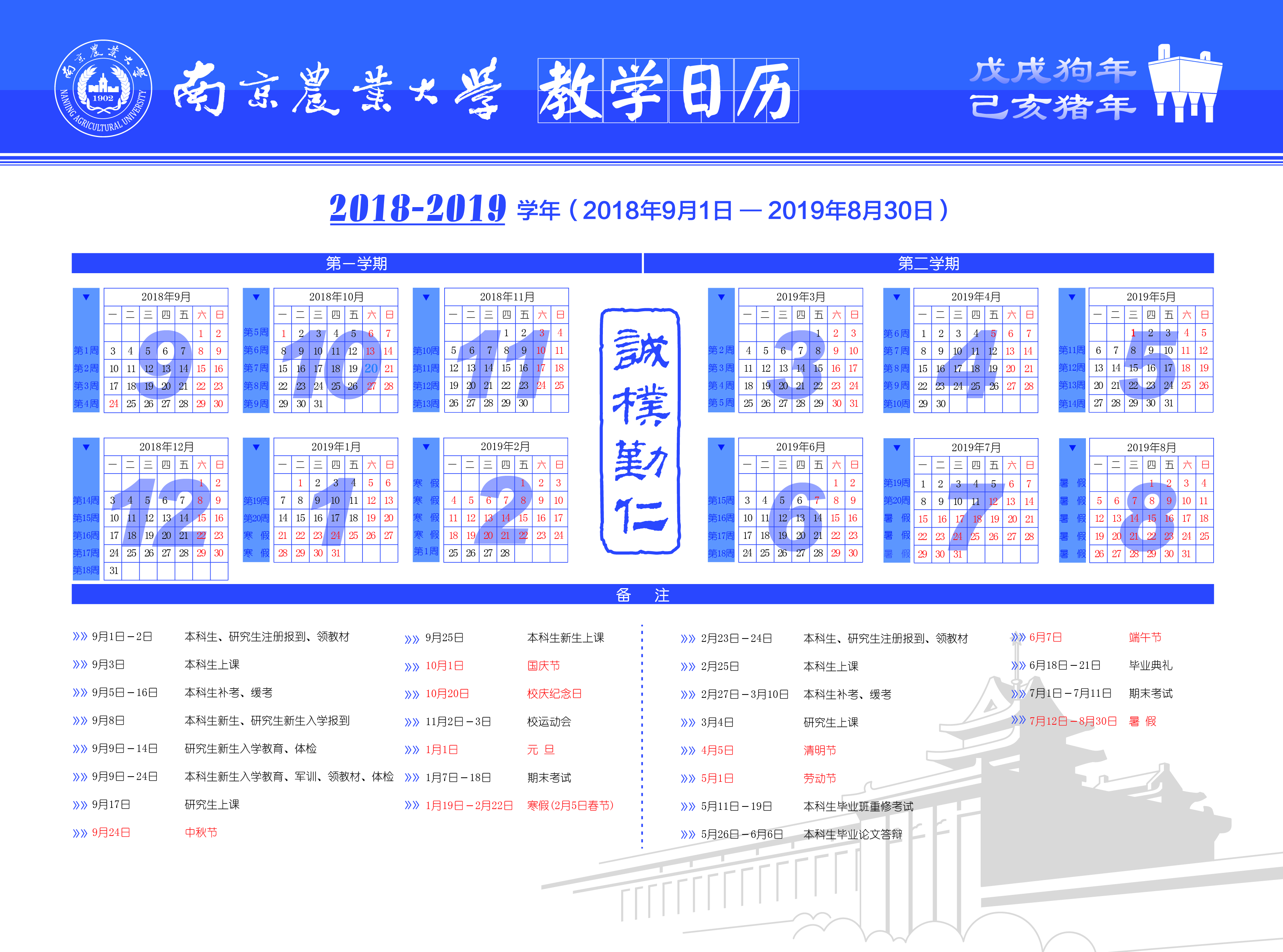 2018-2019学年教学日历