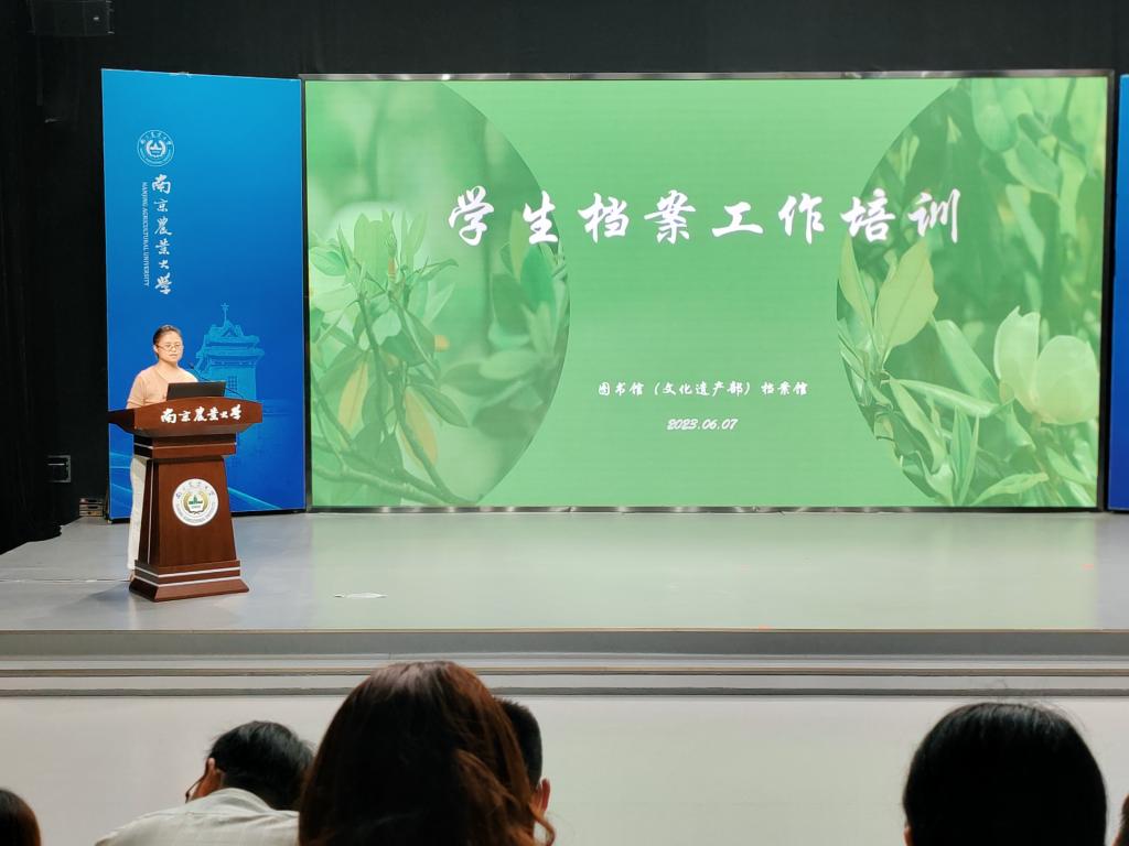 为保证2023届毕业生档案归档及转递工作顺利完成, 6月7日,图书馆(文化遗产部)在图书馆六楼演播大厅举行“学生档案专题培训会”,培训会由人事档案部主任张丽霞老师主讲,各学院负责学生档案派遣工作的辅导员和人事档案部全体馆员参加了会议。