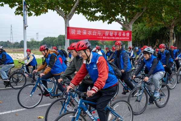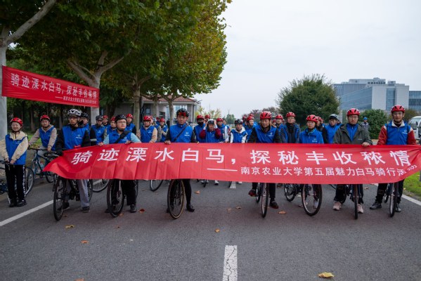十一月的白马基地,叶黄果硕,稻穗轻摇。11月9日,学校在白马教学科研基地举办第五届“魅力白马”自行车骑行活动。本次活动由实验室与基地处主办,南农大学生自行车协会承办。三校区近百名师生参加本届骑行活动。